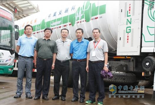 南通中集交通儲(chǔ)運(yùn)裝備制造有限公司常務(wù)副總經(jīng)理鞠曉鋒(左二)、聯(lián)合卡車(chē)營(yíng)銷公司副總經(jīng)理沈揚(yáng)波(中)等人參加了啟動(dòng)會(huì)