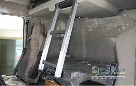 平地板駕駛室整體高度提升后,臥鋪下兩側(cè)的儲(chǔ)物空間也增多了下面的小格,這個(gè)可以從駕駛室外的把手打開(kāi),放些常用的小物件。