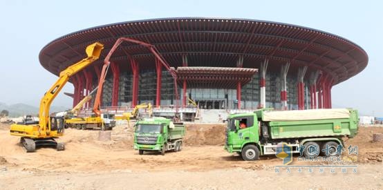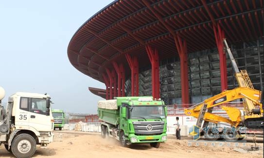 在為APEC會館建設(shè)提供的綠色高效解決方案中,福田汽車及福田戴姆勒汽車系列高品質(zhì)與環(huán)保型產(chǎn)品全面參與。如歐曼新型渣土車、雷沃挖掘機承擔(dān)建設(shè)工地開鑿階段的土方挖掘、建筑垃圾轉(zhuǎn)運工作,雷薩攪拌車與泵車為場館工程建設(shè)提供混凝土運輸與澆筑,雷薩起重機進行現(xiàn)場工程吊裝服務(wù)等,同時,符合歐曼、歐馬可京Ⅳ排放標(biāo)準的LNG系列灑水車等環(huán)衛(wèi)用車保障場館的日常運營與綠化保養(yǎng)。