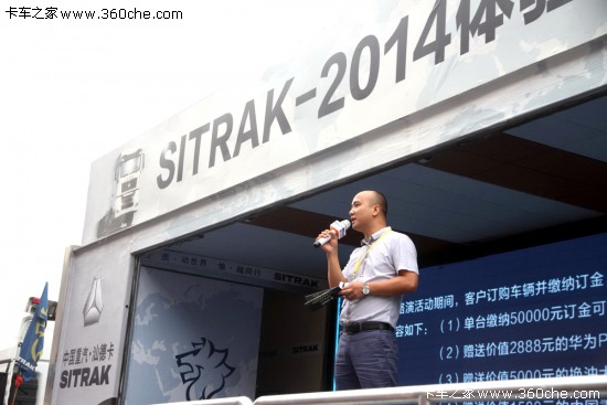 2014年9月15日,中國重汽SITRAK體驗(yàn)式互動(dòng)路演來到成都傳化公路港。在活動(dòng)現(xiàn)場(chǎng),數(shù)千名卡友通過現(xiàn)場(chǎng)的互動(dòng)和體驗(yàn),對(duì)中國重汽的汕德卡進(jìn)行了親密接觸,感受了肩負(fù)著進(jìn)口車替代車型這一重任的高端重卡所帶來的魅力。