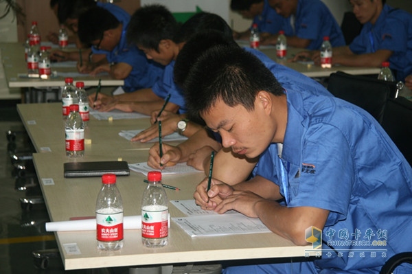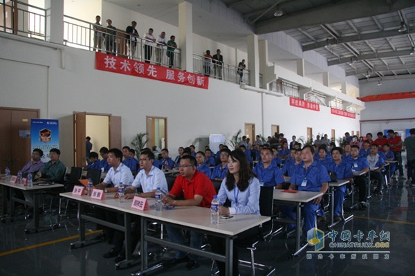 此次國(guó)四服務(wù)技能大賽分為兩部分:理論知識(shí)競(jìng)賽(100分)、維修實(shí)操(100分);其中,理論知識(shí)競(jìng)賽考評(píng)以?shī)W鈴國(guó)Ⅳ產(chǎn)品結(jié)構(gòu)及維修技術(shù)為主,奧鈴服務(wù)規(guī)程為輔;維修實(shí)操考評(píng)內(nèi)容主要為奧鈴CTX實(shí)物故障維修,包括發(fā)動(dòng)機(jī)模擬故障檢測(cè)處理和實(shí)車模擬故障檢測(cè)處理。兩部分成績(jī)相加為選手的最終成績(jī)。理論與實(shí)操相結(jié)合的比賽形式可以對(duì)選手的服務(wù)技能水平進(jìn)行全面的衡量和考核。相比首屆大賽,本屆比賽中增加了隨機(jī)分組的團(tuán)隊(duì)知識(shí)搶答環(huán)節(jié),讓選手在輕松愉快的氛圍中增加自身國(guó)四知識(shí)的儲(chǔ)備與國(guó)四技能提升。