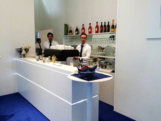 在依維柯展臺(tái)的休息區(qū),還有這樣一個(gè)吧臺(tái),為來(lái)賓提供飲料和食品!