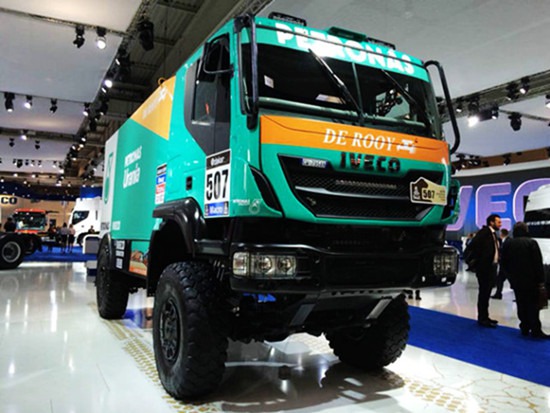2014達(dá)喀爾拉力賽戰(zhàn)車也出現(xiàn)在了依維柯展臺(tái)。這款由全新依維柯Trakker打造而成的戰(zhàn)車,經(jīng)受住了達(dá)喀爾的考驗(yàn),向世人證明了它,無(wú)所不能!