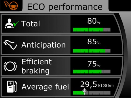 DAF的ECOperformance系統(tǒng)可以幫組駕駛員降低10~15%的油耗。