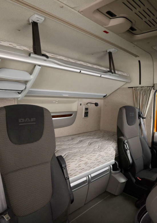 在臥鋪位置設(shè)計了很多存儲空間,包括駕駛室后圍上的儲物格可以用來放雜志,還有充電口和杯架方便使用。