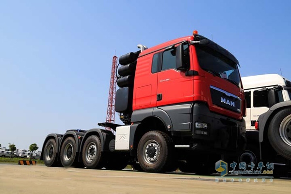 進(jìn)入國(guó)內(nèi)的這輛TGX41.680大件牽引車是國(guó)內(nèi)某用戶專門從MAN定制的重載運(yùn)輸車輛,采用8x6驅(qū)動(dòng)形式,TGX平頂駕駛室。作為一款專業(yè)的大件牽引車,液力變矩器是必不可少的,TGX41.680采用了在重載運(yùn)輸中廣泛應(yīng)用的WSK440型變矩器,牽引總重則能達(dá)到250噸。