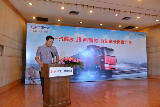 在本次推介會(huì)儀式上,一汽解放汽車有限公司車橋分公司總經(jīng)理金峰、一汽解放汽車銷售有限公司銷售部部長(zhǎng)郭慶義,協(xié)同經(jīng)銷商、用戶代表共同見證了解放J6西南款自卸車在昆明的推介會(huì)。